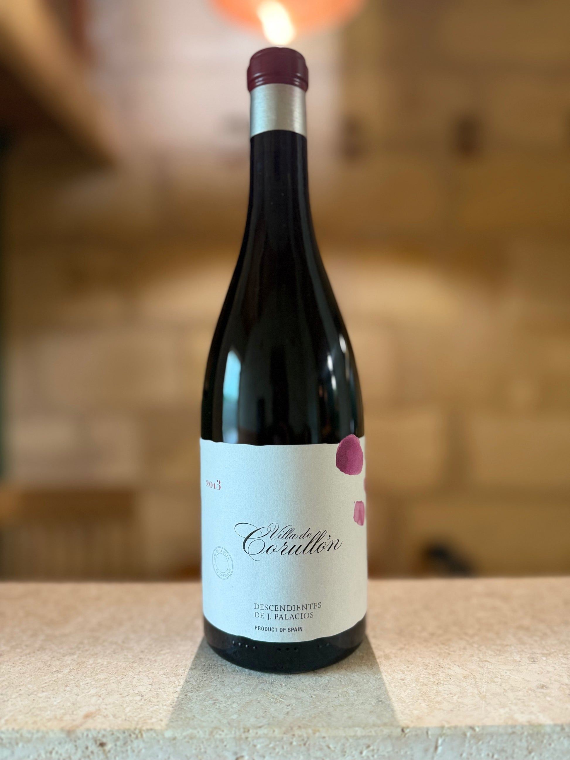 La cuvée Villa de Corullón 2013 est issue d’un assemblage de parcelles de vieilles vignes de Mencía (entre 60 et 100 ans), situées sur les coteaux escarpés de la commune de Corullón, dans la région du Bierzo. Sous l'impulsion de Ricardo Pérez Palacios et Álvaro Palacios, le domaine applique les principes de la biodynamie sur des sols de schistes particulièrement pauvres et accidentés.